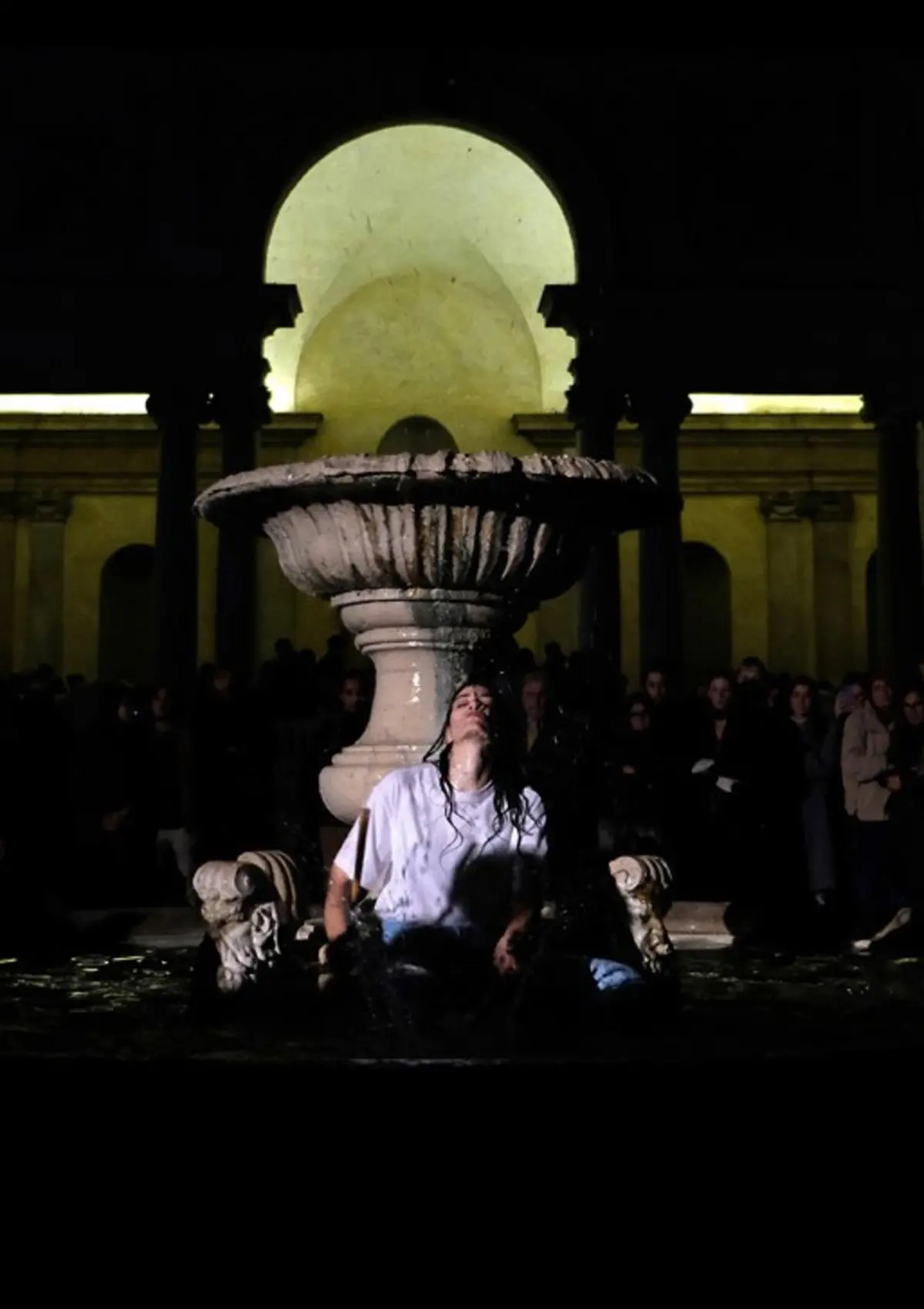 Alix Boillot invite Valentina D’Angelo, batteuse romaine, dans la fontaine Pradier de l’Esplanade de Nîmes : elle interprètera Grace de Jeff Buckley, contredisant un instant le destin horizontal de l’eau.