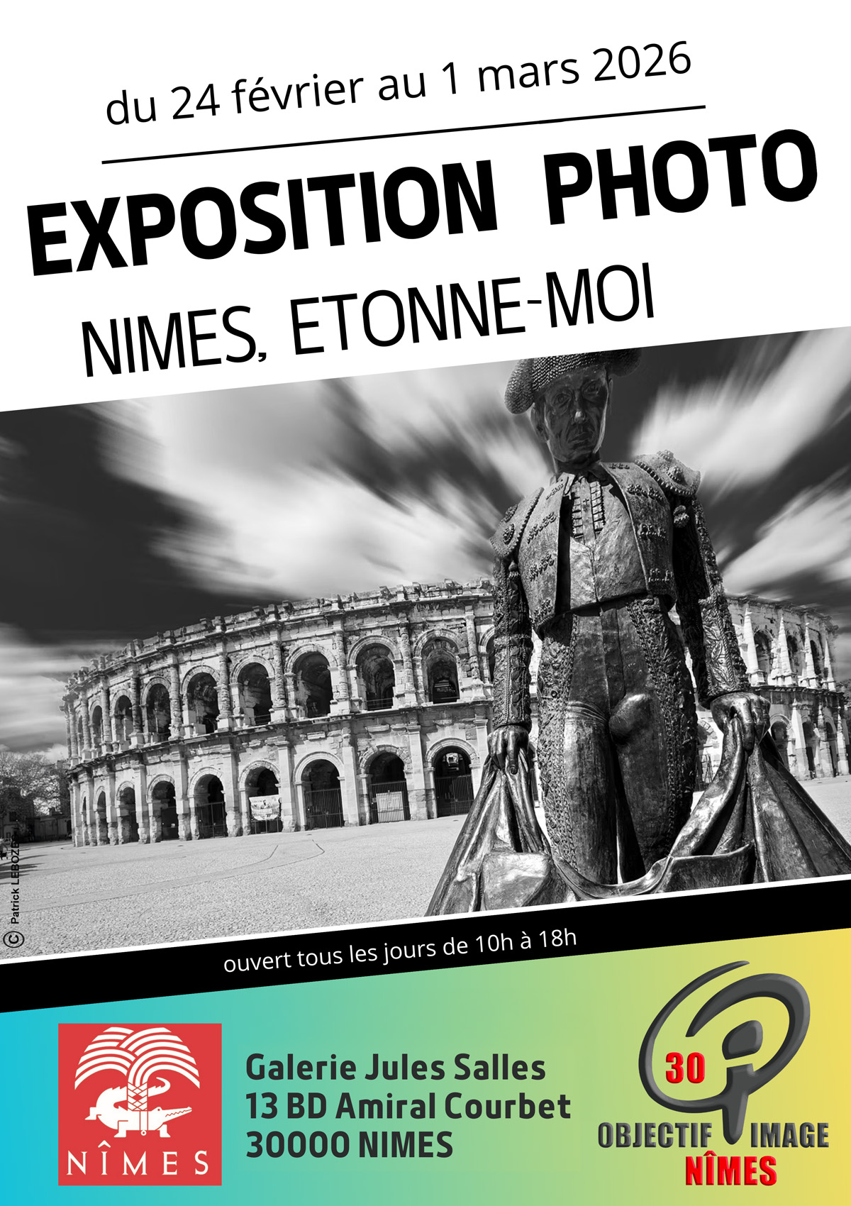 40ème exposition du club Objectif Image 30 Nîmes. Les photographes amateurs proposent aux visiteurs de regarder Nîmes, au travers des 150 photos exposées, sous un angle qui leur permettra de s'étonner.