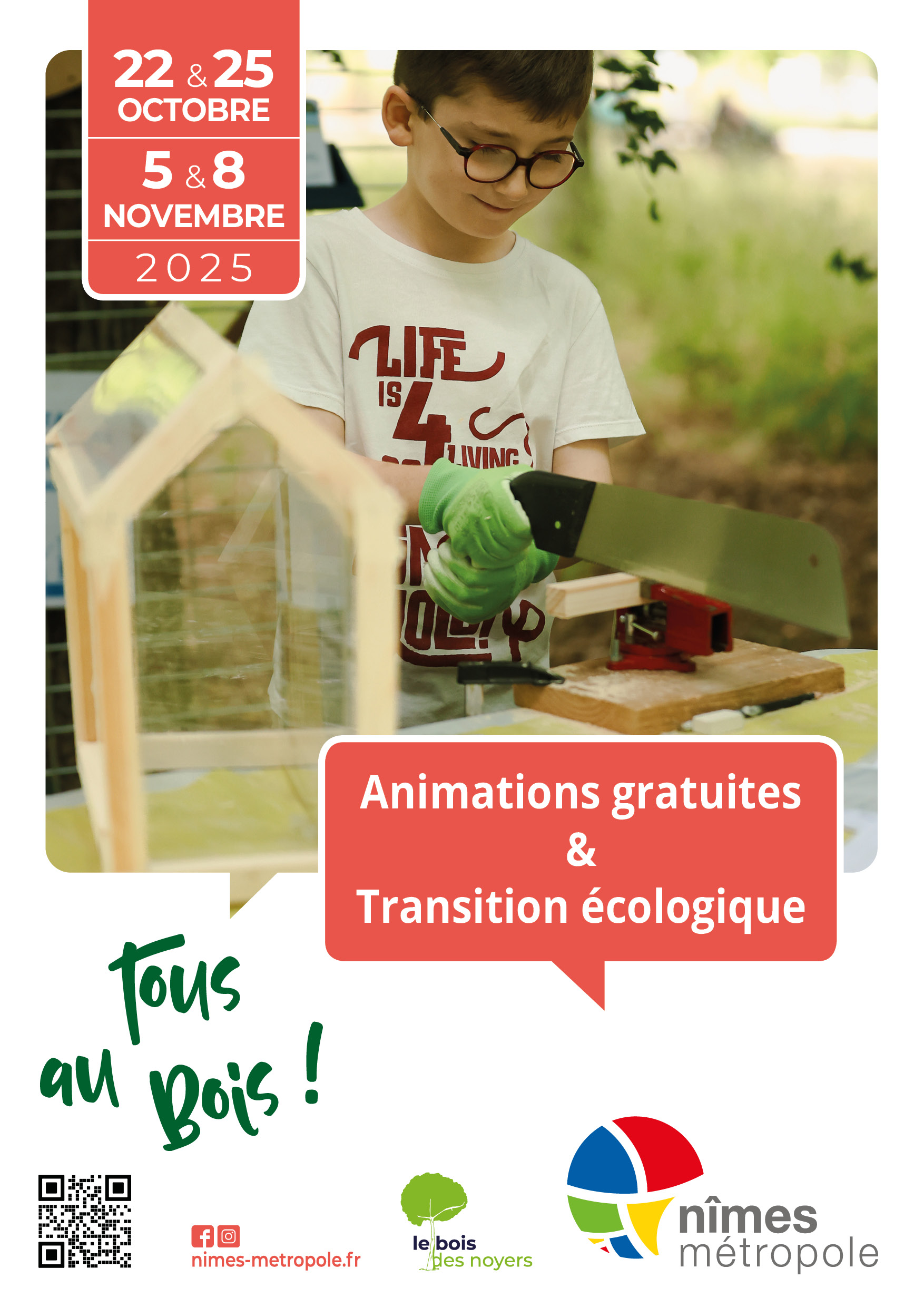 Ludiques et gratuites, les animations de cette 5e édition se déroulent les mercredis 22 octobre et 5 novembre et les samedis 25 octobre et 8 novembre 2025 au cœur du Bois des Noyers.