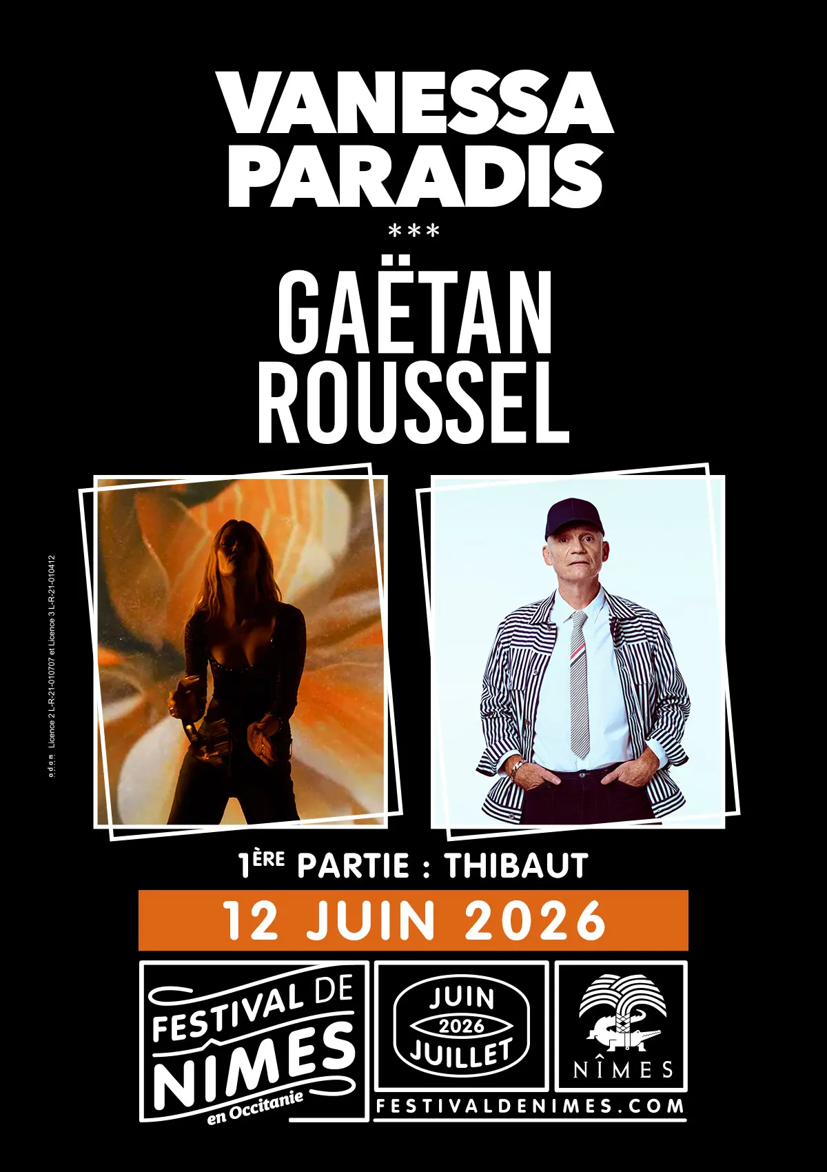 THIBAUT sera sur la scène des Arènes de Nîmes en première partie de VANESSA PARADIS et GAËTAN ROUSSEL.
