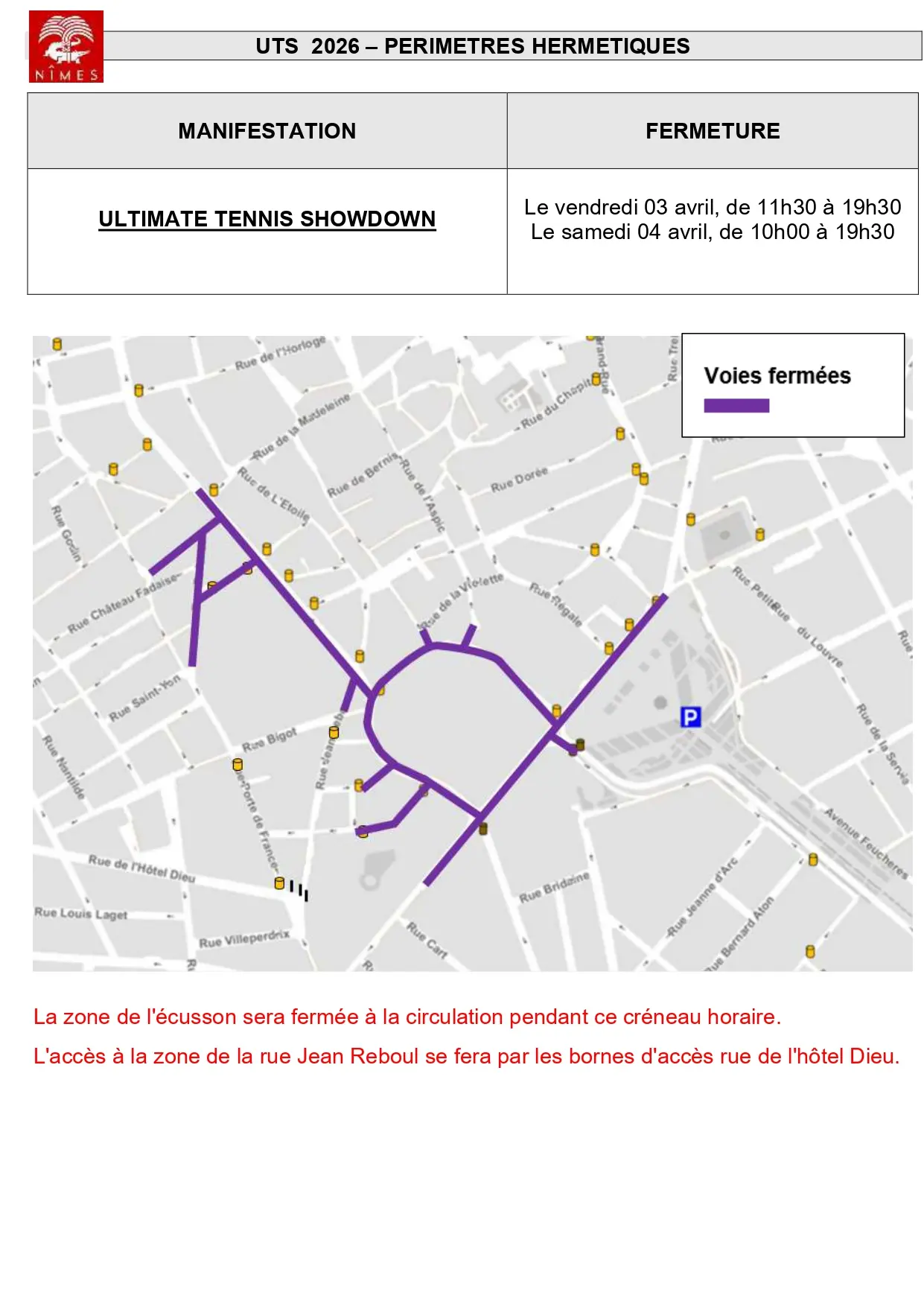 Bastide UTS Nîmes les 3 et 4 avril 2026 : fermeture à la circulation