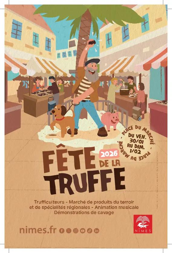 Un rendez-vous en cœur de ville qui donne l'occasion aux Nîmois de venir déguster, acheter toutes sortes de produits locaux de qualité mais également en apprendre davantage sur la culture du fameux champignon. De grandes tentes accueillent les trufficulteurs, ainsi qu’un marché de produits du terroir composé d’une vingtaine de stands de spécialités régionales. Sur place, de nombreuses animations, dont les incontournables démonstrations de cavage.